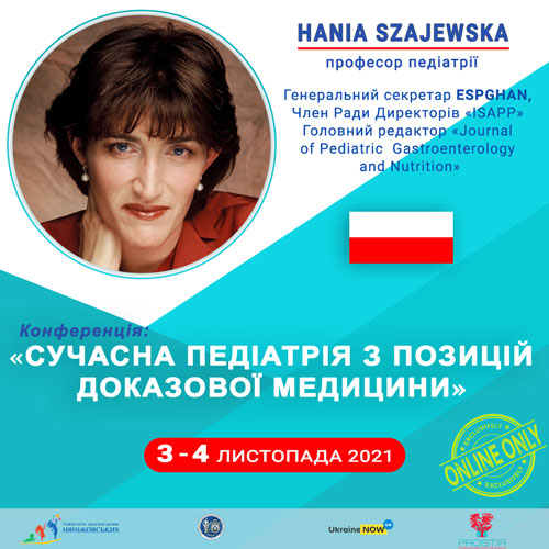 🎓 Hania Szajewska - польський педіатр, доктор медичних наук, професор, зав. кафедри педіатрії Варшавського Медичного Університету. Член ради та генеральний секретар ESPGHAN. Член Ради Директорів Міжнародної Наукової Асоціації Пробіотиків та Пребіотиків «ISAPP». Головний редактор «Journal of Pediatric Gastroenterology and Nutrition»